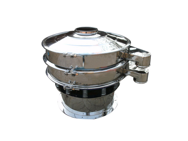 旋振篩(圓形振動篩)由立式振動電機作激振源,因為其上下端重錘安裝在發動軸兩側,使電機的旋轉運動轉變為垂直、水平、傾斜的三次元運動。  旋振篩產品特點:  設計精巧,耐用,適合任何粉類以及粘性液體的篩分。  操作簡單,換網方便,易于清洗。  篩網無阻塞,粉末無飛揚?! ‰s質以及粗料自動排出,并且可以與給料設備、輸送設備配套使用,處理量大,生產效率高。  尺寸小,節省空間,易于移動。  易于養護,可單層或多層使用?! 『Y網設計合理耐用,換網只需3-5分鐘?! 『Y網可達5層,篩分出6種不同顆粒大小的物料